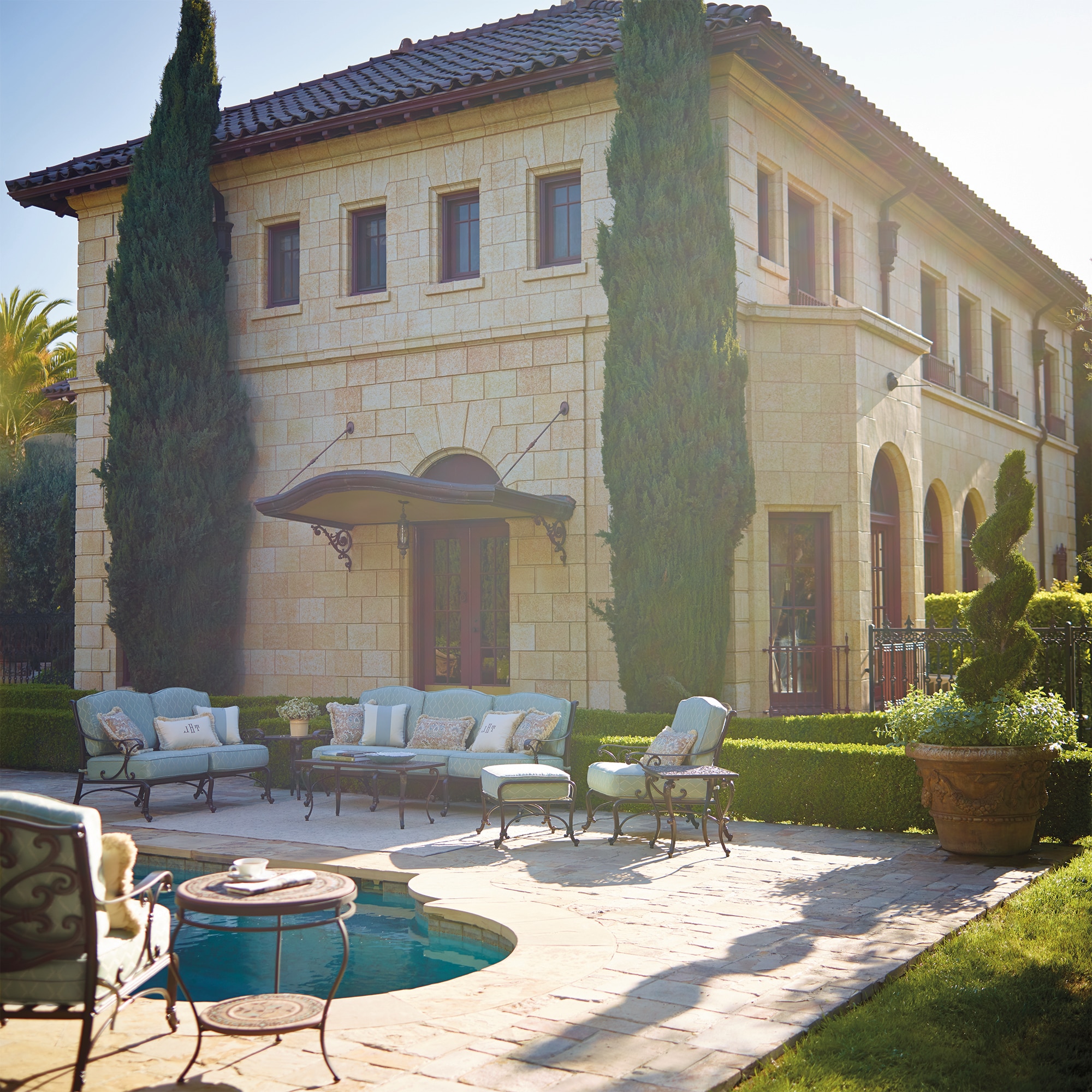 “I love Frontgate's selection of outdoor furnishings! One of my tricks: I use different throw cushions in different outdoor vignettes. It gives the impression of a completely different space... even if the sofas are identical. I change them up every couple of years and it freshens everything.”