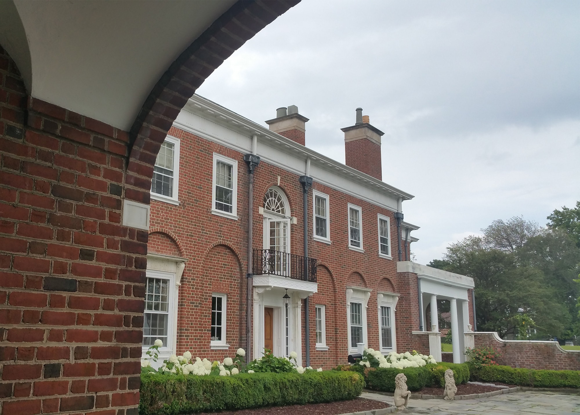 A grande dame known as “The Chimneys” to locals for its distinguishing architectural feature – nine chimneys – the 15,000-square-foot brick manse boasts a rich and colorful 87-year history. It sits one block from Long Island Sound, and it has hosted a bevy of social luminaries over the decades. It even was commandeered as a Coast Guard headquarters during World War II.