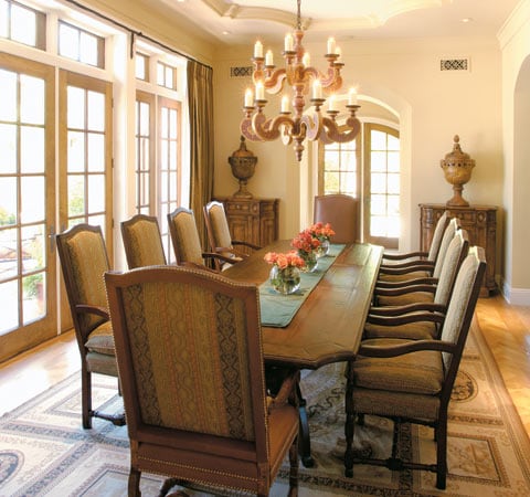 “We furnished the house in keeping with the Old-World architecture,” Daron explains. Only a few pieces of furniture made the move, mostly for sentimental reasons, including one not-to-be-left-behind pine table the kids sat under when they were small. Most of their furnishings, however, didn’t fit into the new scheme of things owing to their incompatible style or too-small scale.