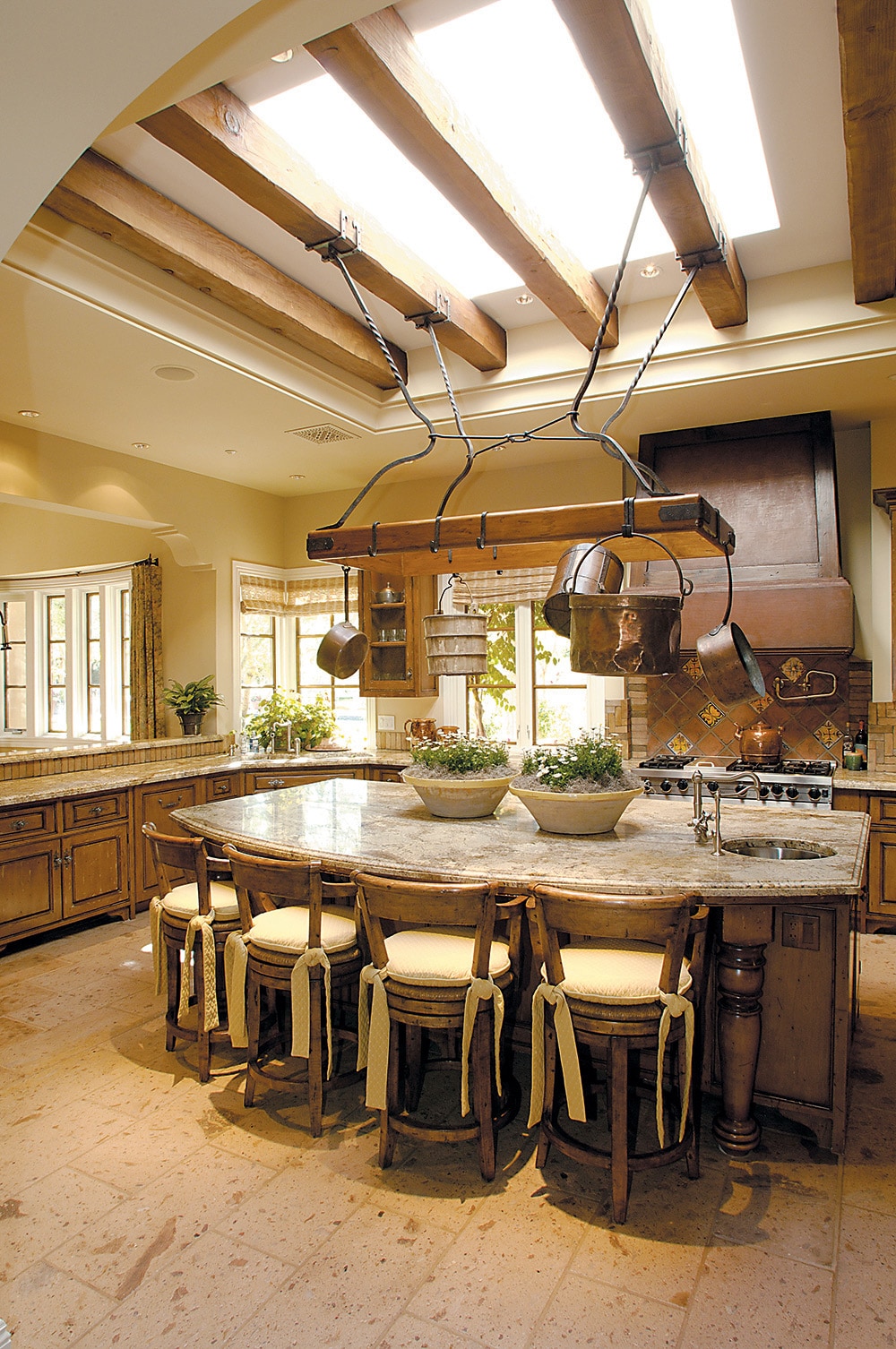 And, of course, the skylight: “I love watching the clouds rolling by,” she notes, adding that David helped design the pot rack suspended from it.