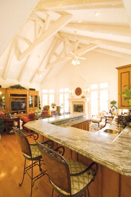 The great room includes the kitchen and living room, which are separated by a tiered granite-topped, wrap-around bar. Prepare for guests with our Kitchen and Entertaining necessities.