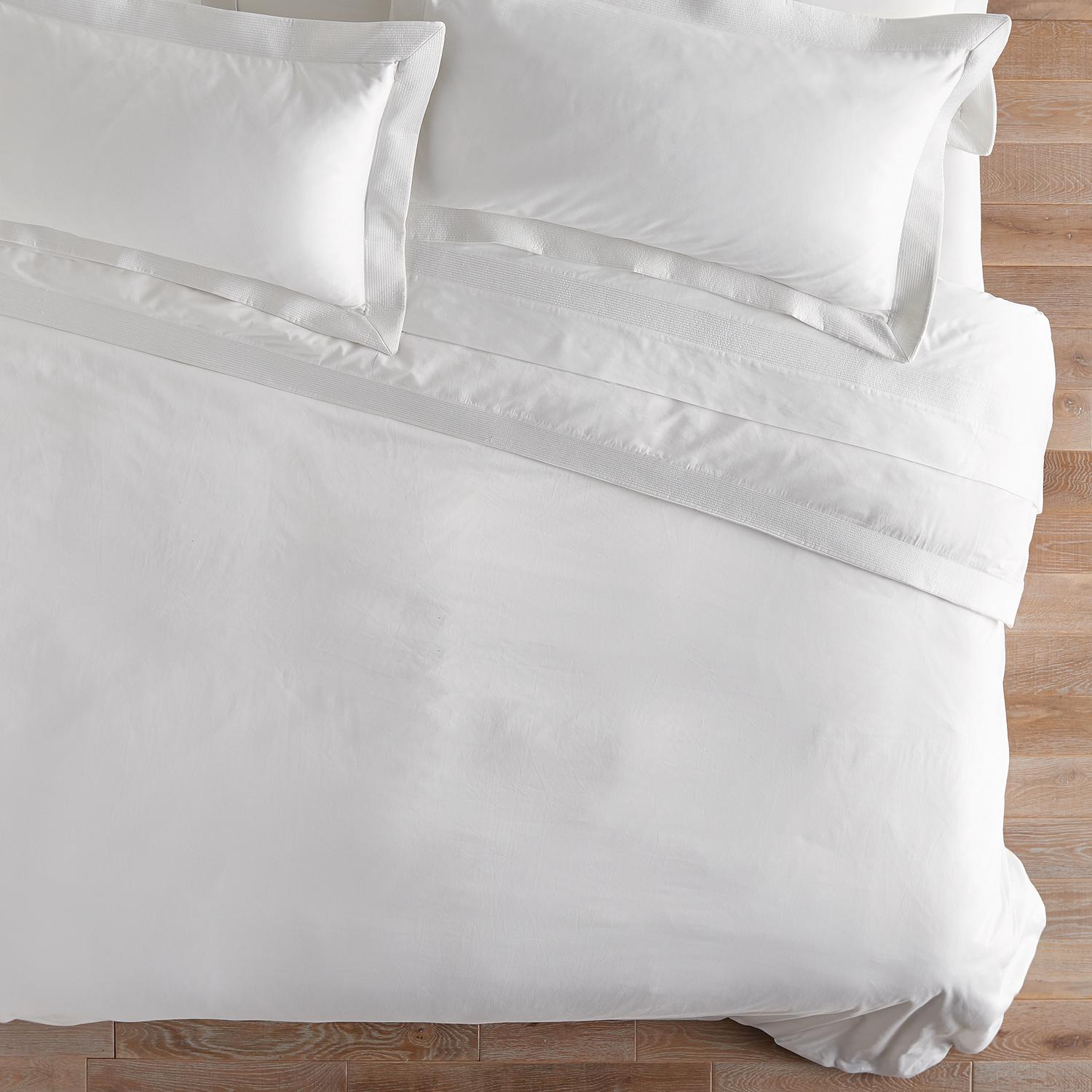 If you’re a minimalist who appreciates crisp whites, clean folds and neat lines, then this look is for you. Line up your many pillows so they are arranged symmetrically, with a neutral blanket on hand in case of a chilly night. Personalize your duvet with a classic monogram for a special touch.