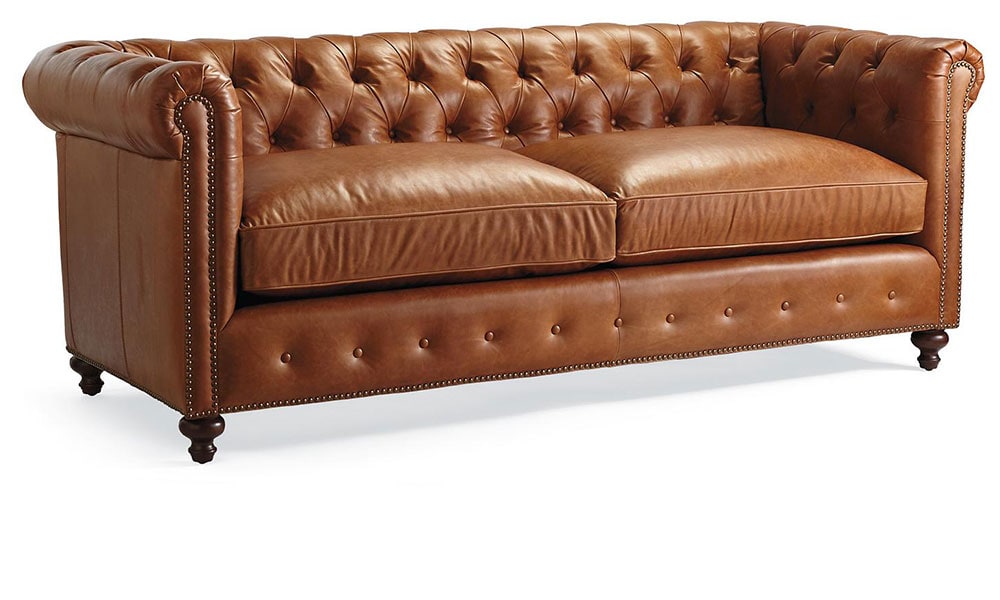 Our bench-made Barrow Chesterfield Sofa receives an artisanal touch during every step of its precise construction process. For example, the soft brown leather receives a whopping 12 layers of hand-applied wax that is then buffed to bring out the natural highlights, giving the sofa a natural gloss. It’s then held in place by a hand-applied nailhead trim, providing a beautiful accent along the front rail and arms of the sofa. Learn how our Barrow upholstered sofa is made.