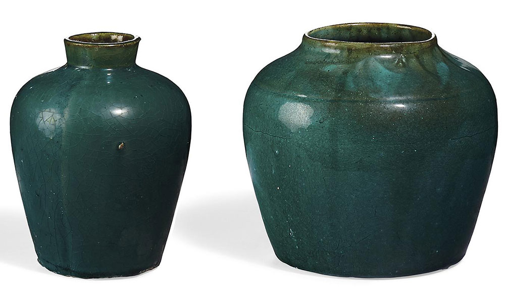 Created as an homage to ceramics from the Eastern Han period (25-220 CE), each one-of-a-kind stoneware piece is formed by hand and finished with a unique, copper-infused glaze for a look of timeless authenticity.
