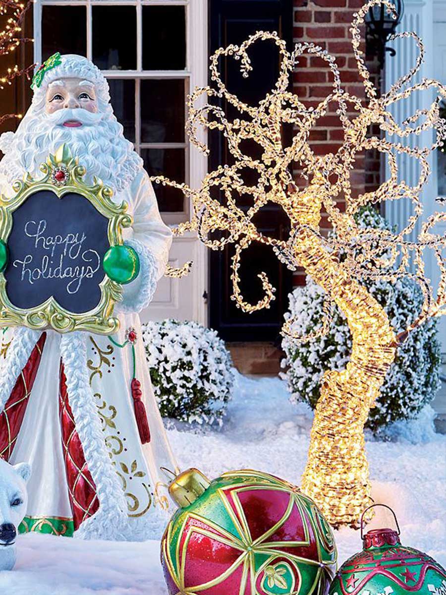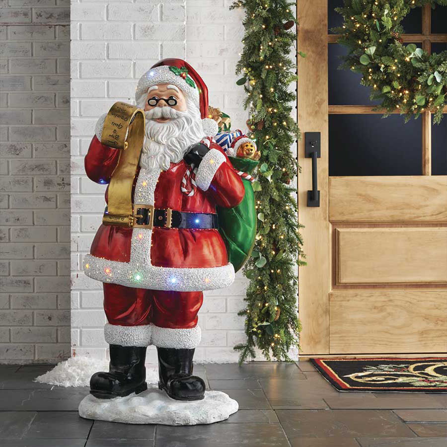 Standing 4 feet tall and made of all-weather resin and stone composite, this nearly life-size Santa is checking over a glowing list of gifts, reminding kids that they probably want to be extra nice this year. Guaranteed to provide extra holiday sparkle, he’s been handpainted and adorned with strategically placed colored lights.
