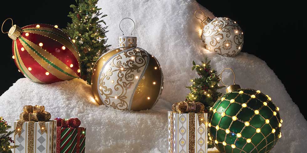 You go all out decorating your trees with ornaments but why stop there? These oversized yard ornaments are fitted with warm LED lights and an all-weather metallic finish. Use them on your patio, as part of a yard display or by your holiday tree for an extra impressive indoor display.
