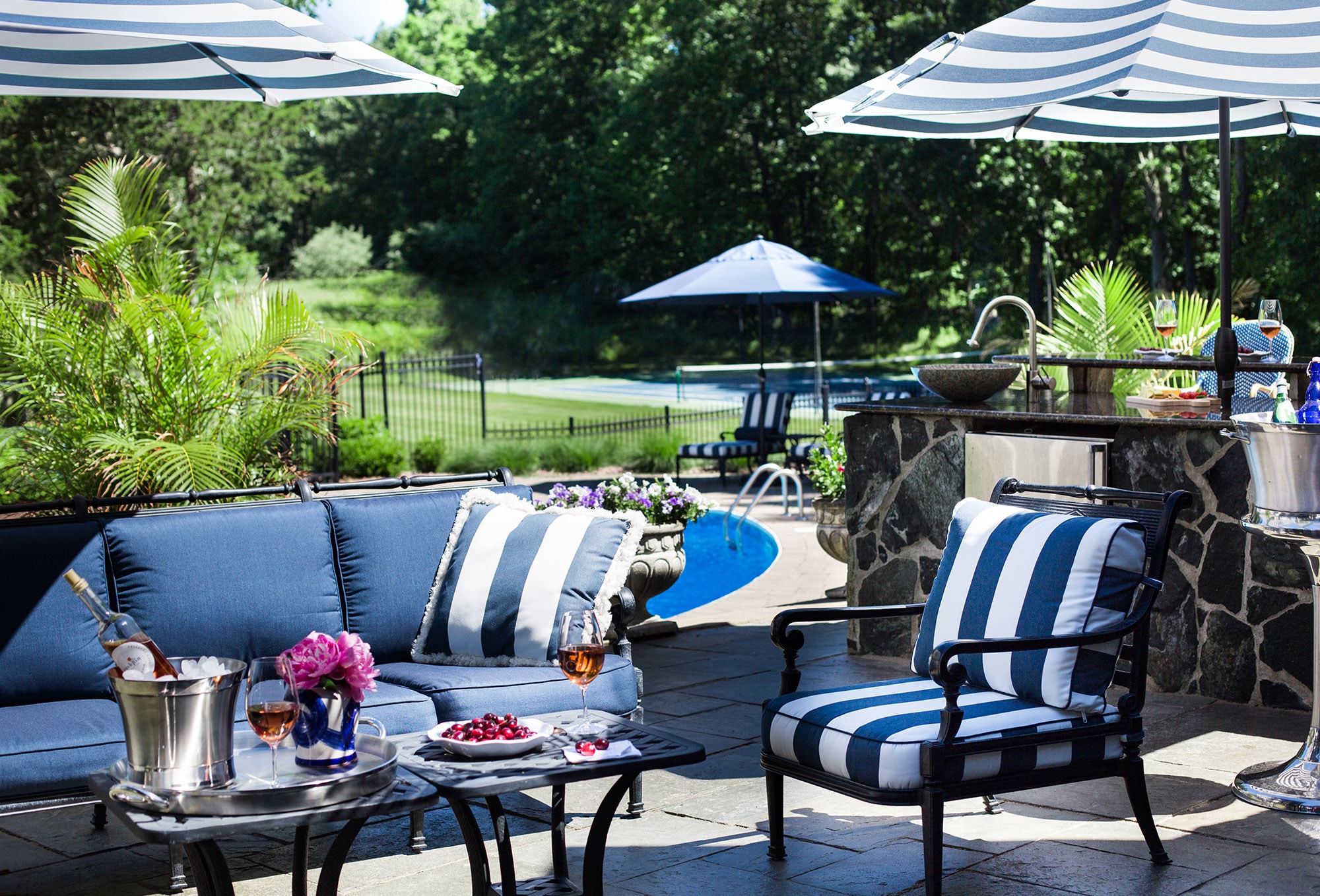 “I find that the relaxed atmosphere of being outside puts everyone more at ease. Unless I’m having a more formal dinner, I encourage guests to come and go as they please. I often have food ready that’s tasty at room temperature to accommodate an open-house type of atmosphere.”