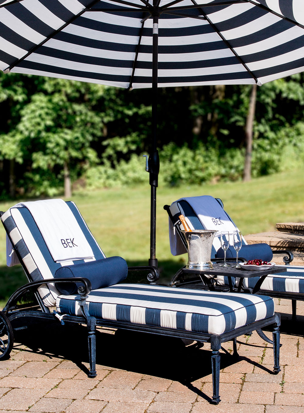 “The more umbrellas the better! Creating multiple shaded spots for guests to gather will help prevent sunburn and sun fatigue. Our market umbrellas tilt, which makes them so easy to shift with the sun throughout the day.”