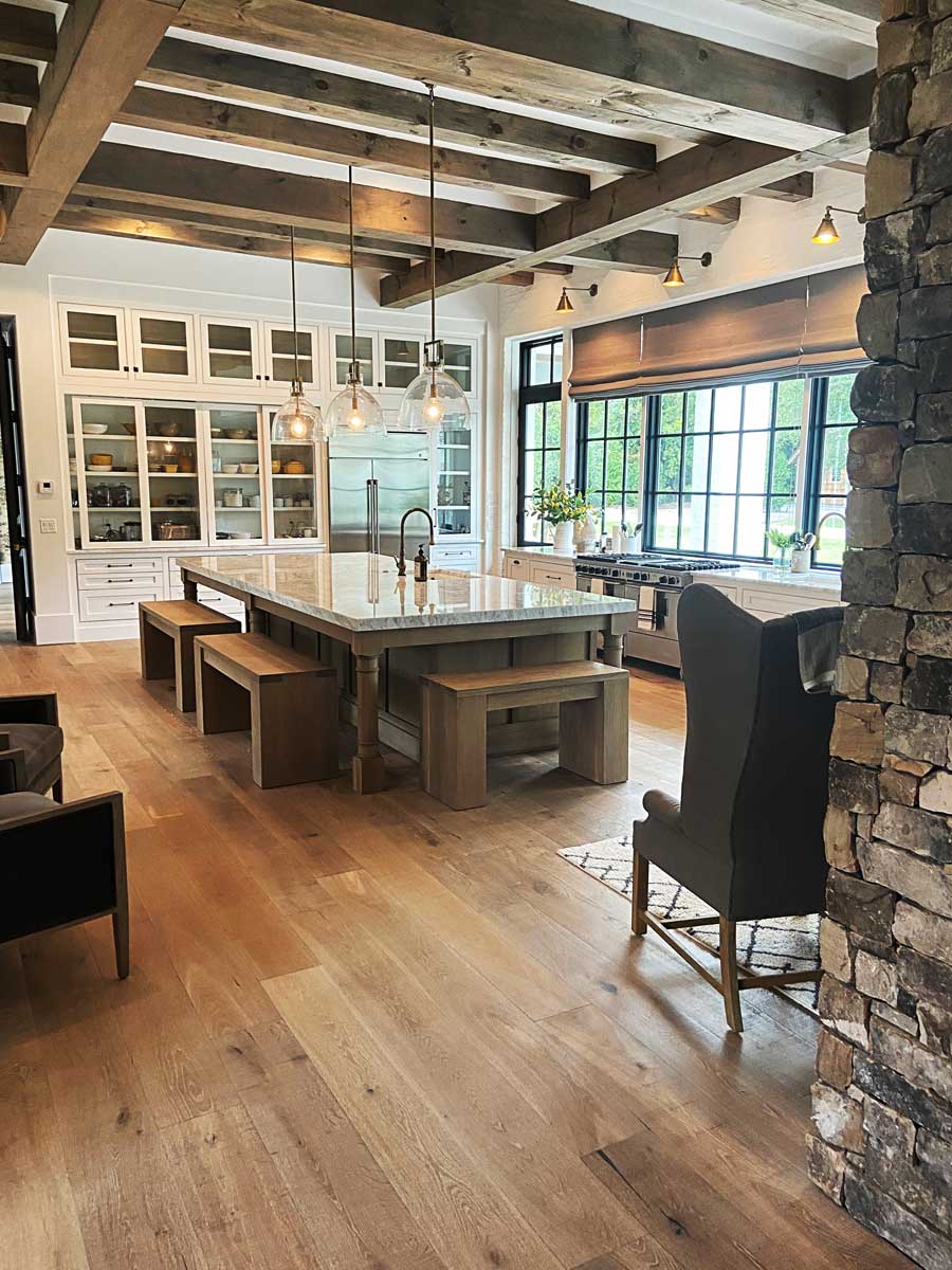 SULAKS: Well, this particular property was very close to a tear down, so we were faced with the challenge of creating additions to some areas while attempting to salvage some framework in other areas and doing so in a seamless way. It was important for us to preserve and recycle what little was left, and since we needed to raise the ceilings on the first floor only, we had to figure out how to preserve the second story. This was accomplished by bringing in a company that raised the second story high enough to reframe the lower level to the desired height. It ended up working like a charm!