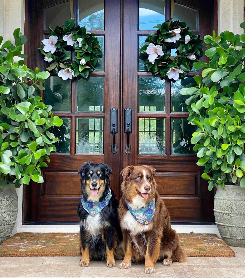 Magnolia Wreath, Chauncey Corgi Statue and Wingate Monogrammed Mat, as styled by @thegoldenaloe