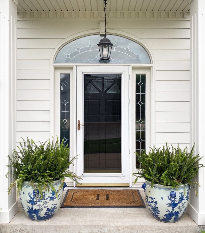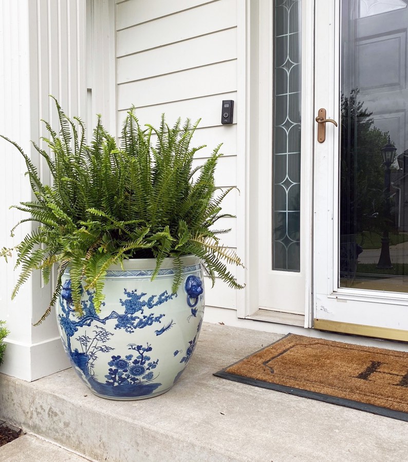 Pembrook Monogrammed Coco Door Mat and Blue Ming Ceramic Handpainted Planters, as styled by @makerista