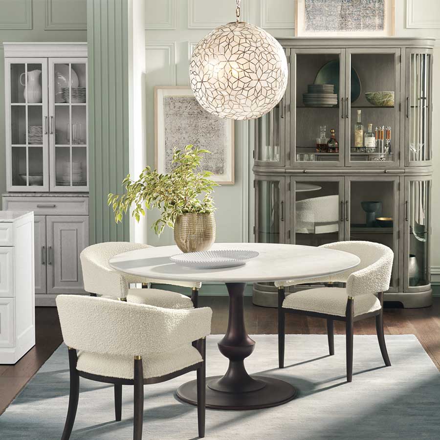 Often the jewel of any room, a chandelier has a way of centralizing focus by offering bright illumination with multiple bulbs in a single fixture. These statement pieces can add sophistication to any room when hung above dining room tables and staircase landings, in entryways and even bathrooms for a real wow-factor. Most chandeliers come with an adjustable cord so you can achieve exactly the right height for your space. While you should hang your chandelier at whatever height feels right to you, it is recommended that the lowest point of any light fixture above a dining table hang 30–36 inches above the table’s surface. Similarly, if you are hanging the fixture in an entryway, the rule of thumb is to hang it at least seven feet above the floor. Whether you want classic, glamorous or coastal, finding a chandelier that matches your aesthetic is easier than ever.