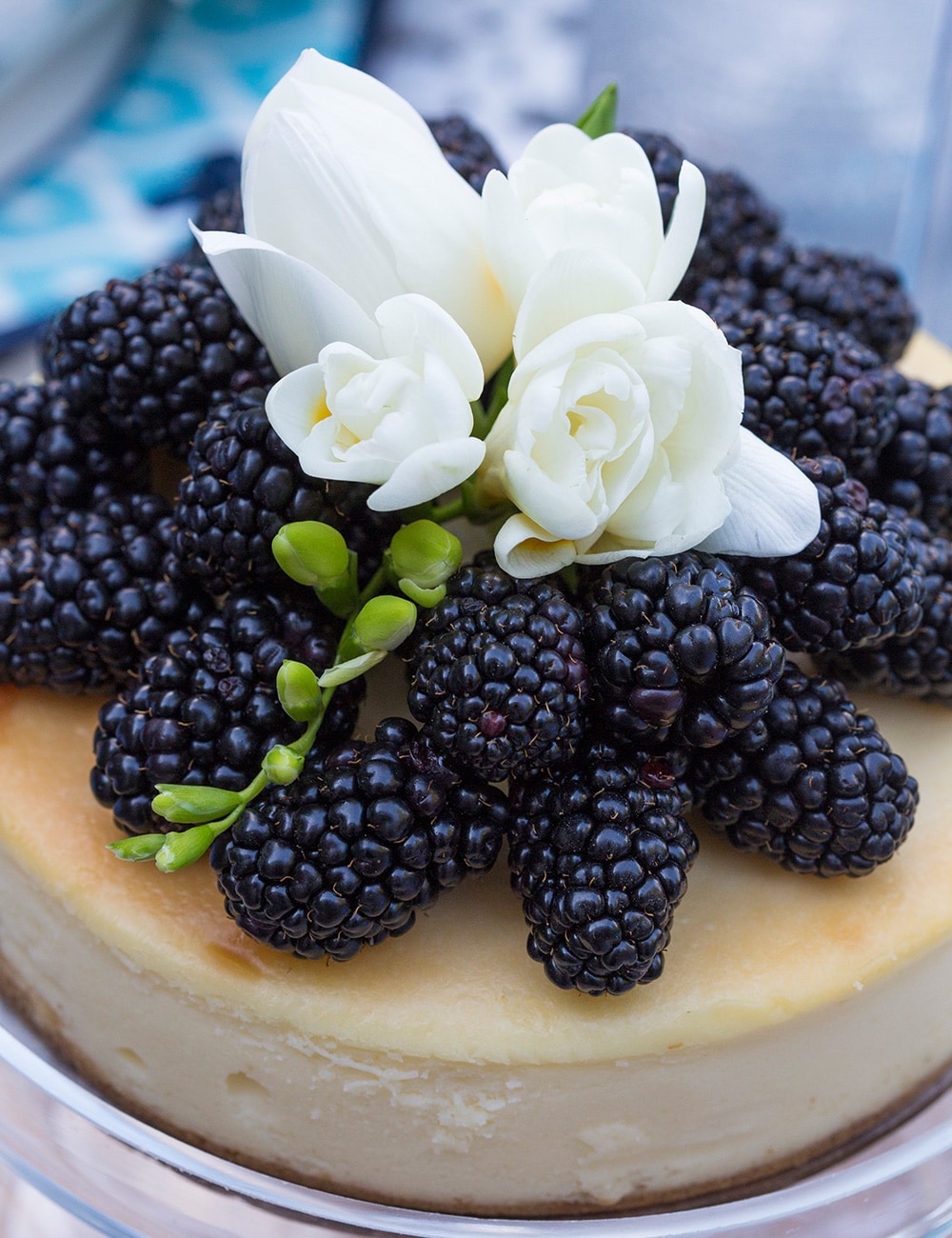 “When I’m short on time, I have a little trick that makes dessert a breeze: pick up a store-bought cheesecake and top it with fresh berries. Add a few extra blooms on top from your flowers and you’re looking at a beautiful dessert! If it’s a birthday you’re celebrating, just ask for a plain white buttercream cake and add blooms on top. Placing desserts on cake stands will give them a more polished presentation.”