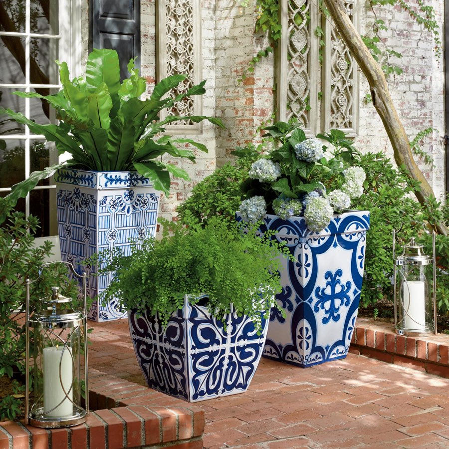 Just like in your indoor living room, accessories can help your outdoor space feel grounded. In addition to showcasing your style, planters and urns can function almost like room dividers, helping to define an outdoor area. Larger and taller styles, as well as groupings, work best for this purpose.