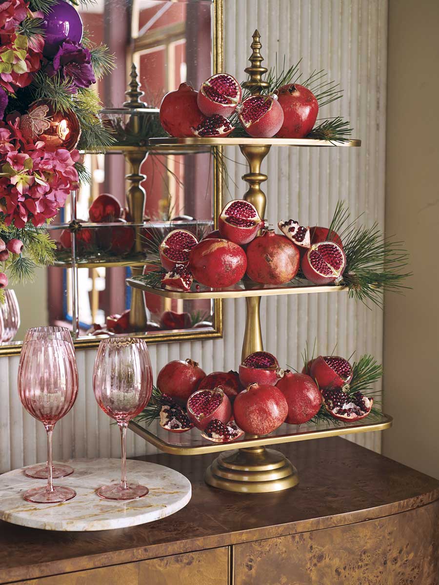 This winter, we’ll see an increase in unexpected icons offering a whimsical alternative to the season. Our favorite execution of this trend is a playful homage to sweet decadence, with dessert-inspired detailing. The theme of this confection trend is sugar plum dreams mixed with an air of sophistication. Homes will see hints of swirling peppermint, bejeweled faux fruit accents and shades of rich honey and amber (and even bee motifs). Ornaments, wreaths and more will carry this indulgence through the home, both inside and outdoors.
