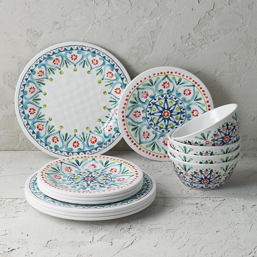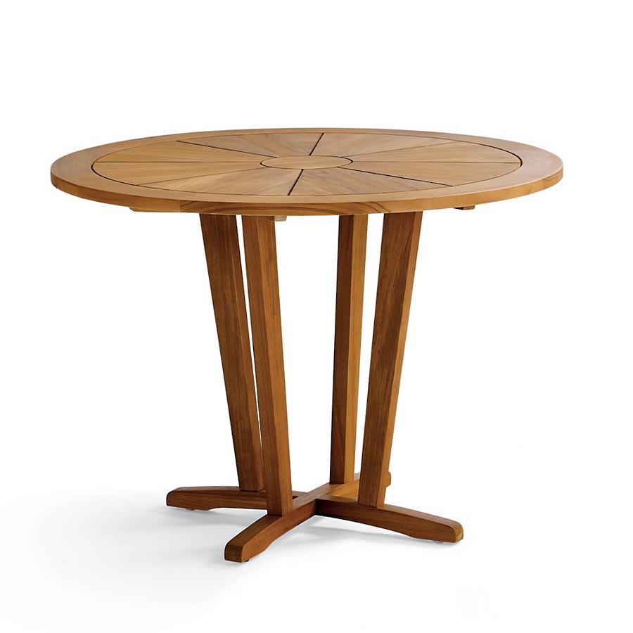 Some tables, chairs and dinnerware have become staples of outdoor dining for good reason: They respond beautifully to anything you throw at them – from rogue balls and the scorching sun to spills and unexpected guests. Here, the classic and weather-hardy Round Teak Pedestal Dining Table and lightweight Cafe Stacking Dining Chairs cater to low-key meals, as does the break-resistant Raya Melamine Dinnerware. Add an umbrella, torches or twinkling lights, and you just might forget you aren’t overlooking the ocean.