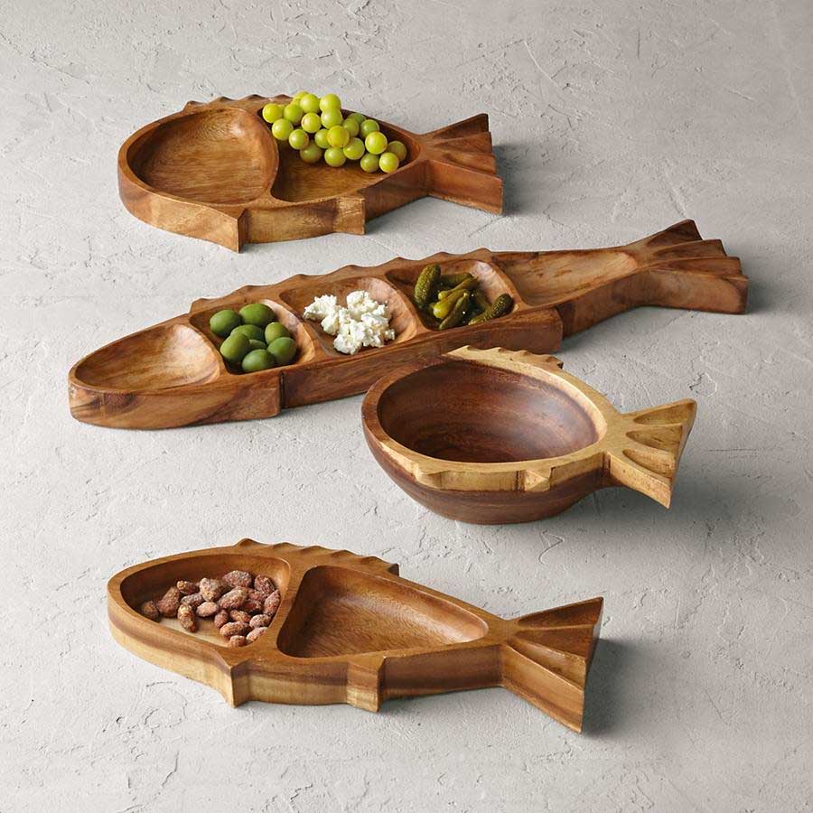 - Fill this Wooden Fish Platter with dips for the table, or use it when cooking to hold various rubs, spices and sauces for your meal.