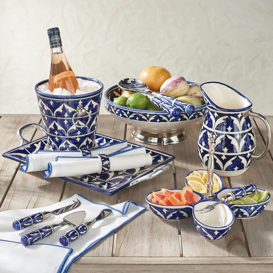 With its Italian-inspired blue and white motifs, our Piazza Ceramic Serving Collection makes every outdoor gathering feel like a getaway. Whether serving a pitcher of cocktails and tapas for happy hour or making a full meal of it, your guests will want to linger. And while the Piazza is certainly dressed up enough for entertaining, we like the idea of designating it for all your outdoor dining purposes, even if it’s a quiet breakfast for two on the patio.