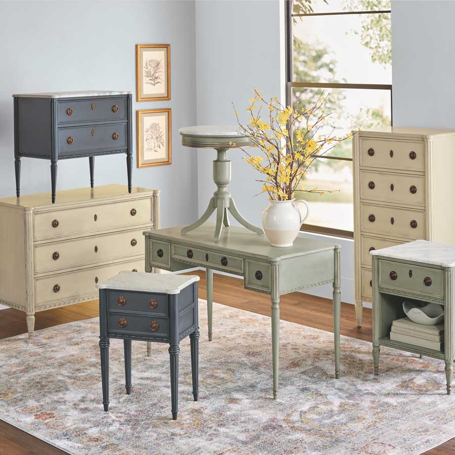 Why You’ll Love It: This exclusive collection is offered in a variety of fresh, soothing colors, including French Linen, French Patina, French Charcoal and Indigo. Each piece in the collection goes through a 15-step hand-finishing process and is crafted from durable mahogany or birch hardwood, featuring dovetail construction.