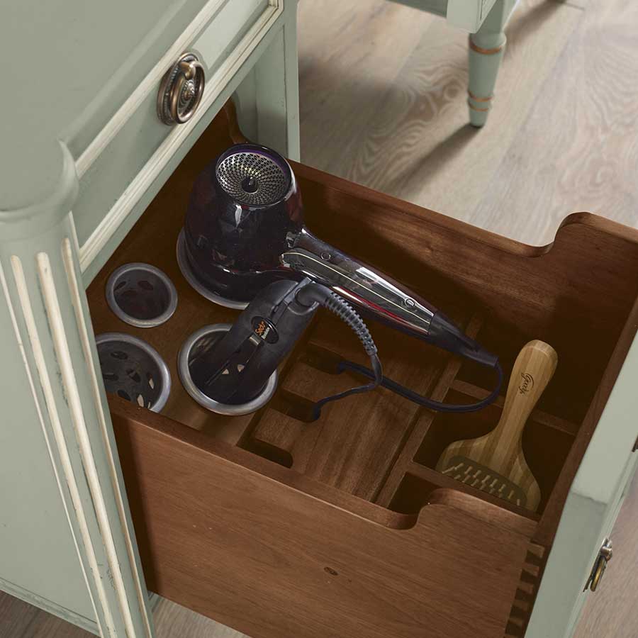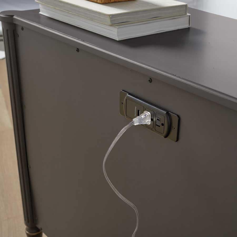 Not Just Stylish, But Functional: This stunning collection also comes with modern-day functionality. An integrated power source can be found in the Etienne Sideboard, Etienne 3-Drawer Chest and Etienne Shelf Nightstand. The Etienne Nightstand boasts a hidden storage compartment, while the Etienne Vanity features removeable back panels for easy plumbing access. And the new Etienne Bar Cabinet offers removeable wine shelves and wine glass storage for ultimate flexibility. The functional elements in this collection are endless.