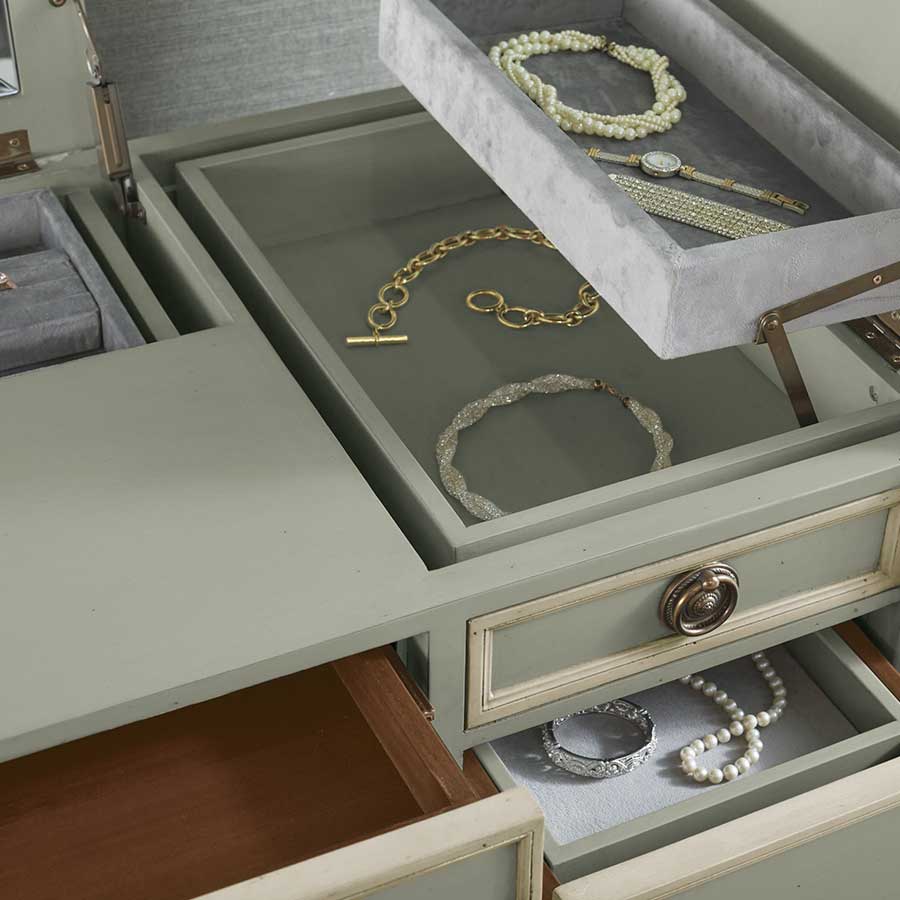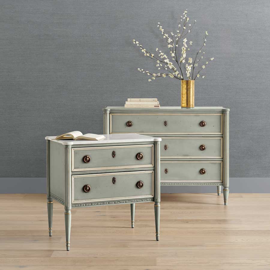 Introduction: This antique-inspired collection exudes 18th century refinement with brass-ring handles and cast decorative elements.