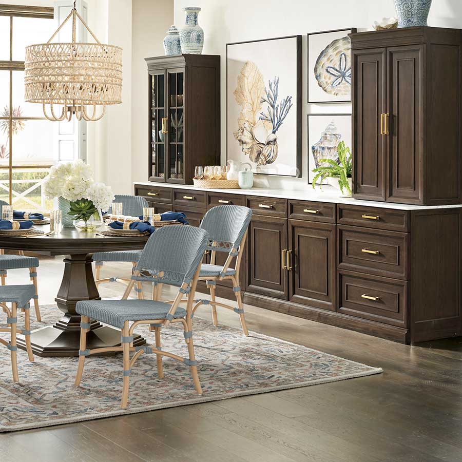 Not Just Stylish, But Functional: From expandable dining tables to modular pieces made to fit together, this timeless collection is crafted to work for you. With pieces offering features such as adjustable shelving, reversible wine shelves, covered cord management, integrated power strips, built-in LED lights and soft-close doors and drawers, Hunter is just as practical as it is beautiful.