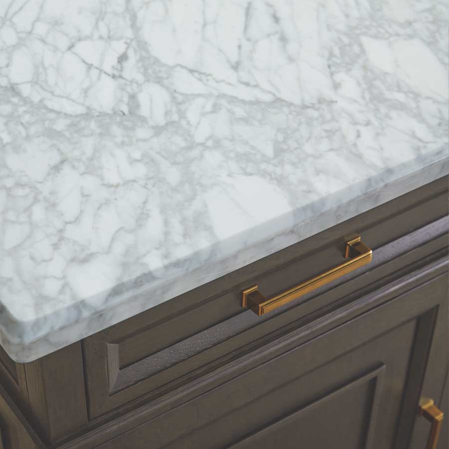 Inspiration: Borrowing characteristics from transitional architectural molding and step details, this modular collection takes classic elements and gives them a modern twist. Hunter’s neutral palette, rich tones, ornate detailing and Carrara marble give its pieces sophisticated and enduring style.