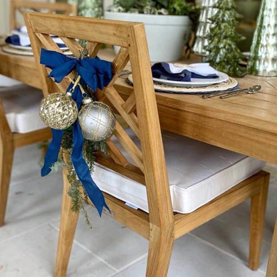 GP: No holiday decor is complete without beautiful ribbon. I use it to drape across a mantel or to attach a petite wreath to the back of a dining chair. I get it from my mother – she would put a bow on anything that wasn’t moving.