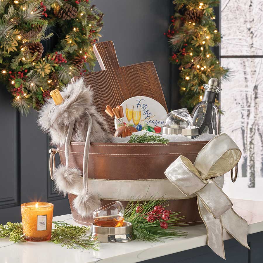 Didn’t you hear good things come in beverage tub packages? Our customer-favorite Optima Beverage Tub doubles as a catch-all for festive finery. A gift basket of sparkling seasonal accents can be topped with deluxe tabletop games for playing by the fireside. Don’t forget a cozy throw to stay extra toasty (and maybe a bottle or two of bubbly).