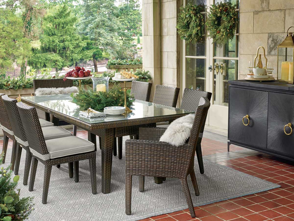 If you’re lucky enough to live in a warmer climate or have a heated patio, porch or four-season room, open-air dining can be a wonderful way to celebrate the holiday in a more natural setting. In addition to leveraging the rechargeable LED lamps mentioned above, consider adding lanterns or string lights for an intimate dining moment. You can add flameless candles to lanterns or even fill lanterns with fairy lights for a little whimsy.