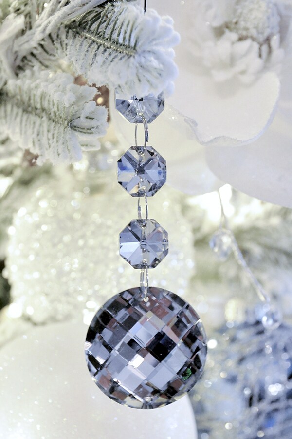 For her tree, Randi Garrett wanted a look that felt like an icy winter wonderland. Our Winter Dreams Ornament Set (so beautiful, it’s currently sold out!) inspired the color palette and led the way for this magical design. “No tree is complete without a special, unexpected pop,” Randi says. “It takes your tree to the next level and makes it feel unique and beautiful. Adding crystal ornaments and garlands to this tree created a special touch.” To get this decked-out look, Randi started by adding picks and larger ornaments, then layered in the smaller ornaments and the ribbon. She finished by tucking fur ribbon into the tree to make it feel full and soft. “Placing the ribbon last conserves your yardage and allows you to fill in gaps,” Randi says.