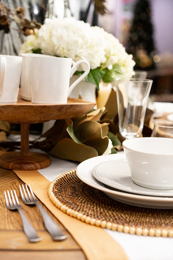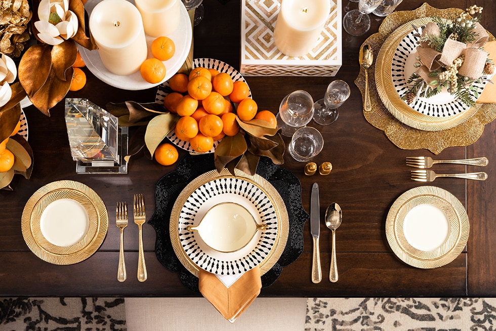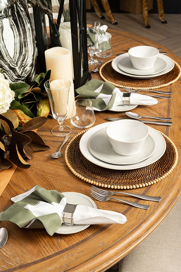 “The first step is to finalize the style or theme of your meal and build out the table design from there. Start with dinnerware, flatware and glassware for your foundation, and then move on to styling the centerpiece and accessories in coordinating colors,” Denise says. “And don’t forget to add that last personalized touch – place cards!”