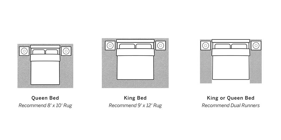 No one wants to step out onto a cold floor first thing in the morning, so making sure that you purchase a rug large enough to cover the space next to your nightstand is essential. In an ideal world, the rug would extend at least 24 inches on all sides of your bed, from top to bottom. If that feels like too much, make sure to position a small rug so that it covers this essential part of the floor where you step out of bed. Because this space isn’t a main thoroughfare like other places in the house, it’s a great opportunity for more delicate, artisanal rugs that don’t require heavy durability.