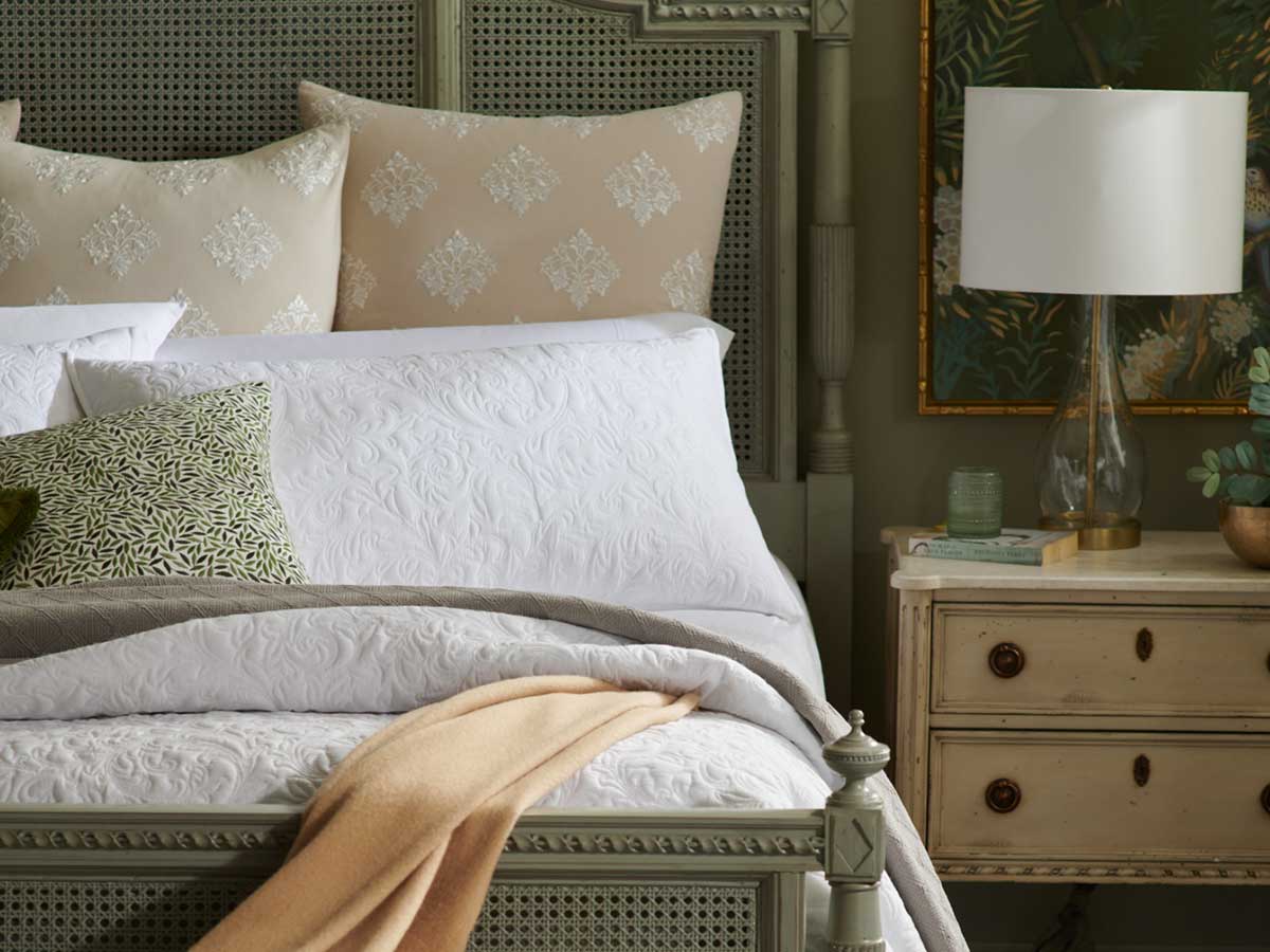 BD: There are a million ways to style a bed if you have the basic building blocks (i.e., euros, shams, coverlet, duvet, throw, etc.). I always encourage people to get playful with their bed layering. I like to add my duvet as the top layer because it is the first thing I will shed on those unexpectedly warm nights of early fall.