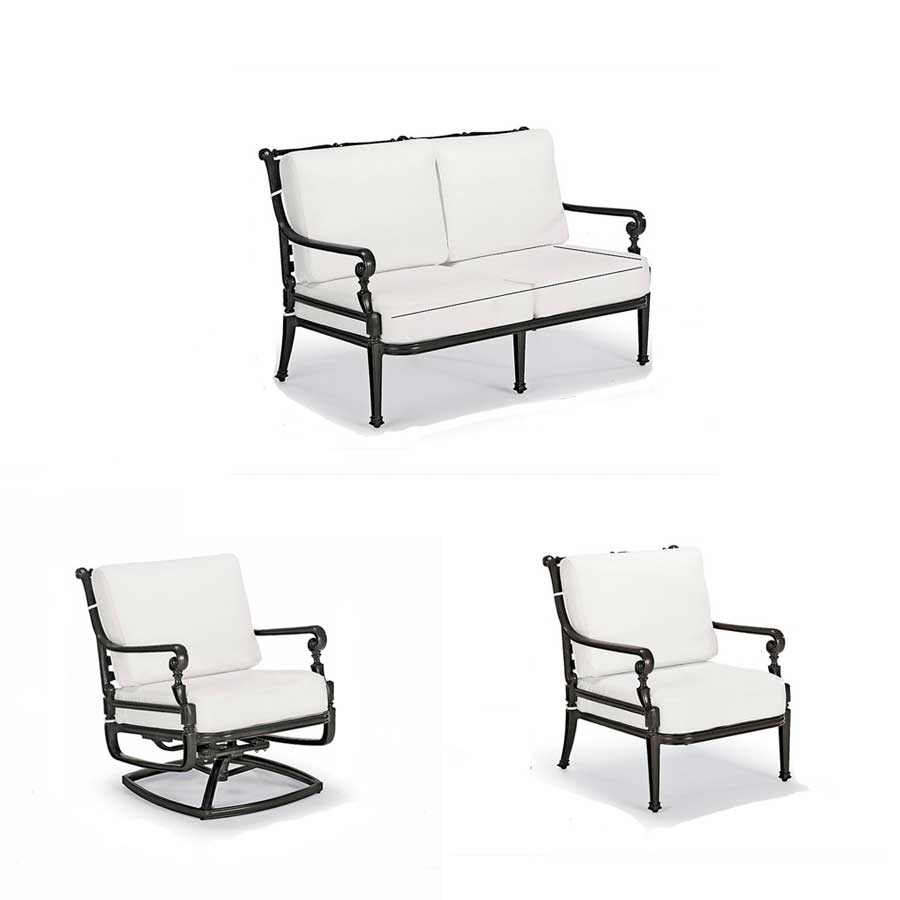 Introduction: An elegantly designed cast-aluminum outdoor furniture collection complete with distinctive lattice detailing.