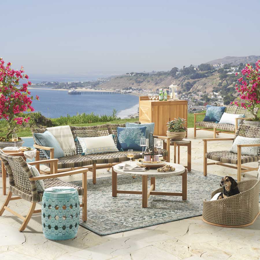 Introduction: An open-weave outdoor collection with seaside-chic style and generous proportions.