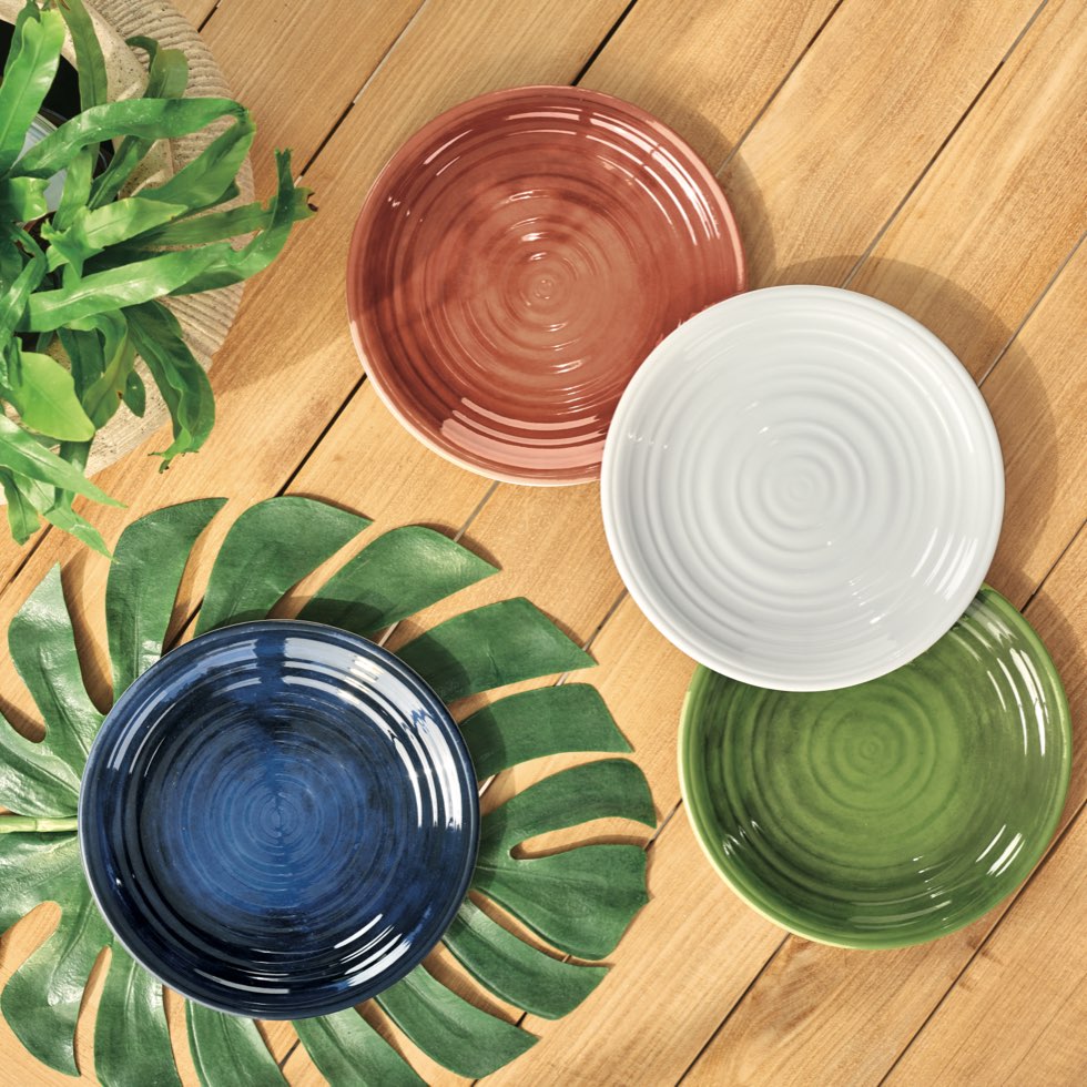 Another stress-minimizing decision? Eliminate the fear of broken plates without sacrificing your style. For outdoor entertaining, our extremely durable melamine collections look just like ceramic or china but resist breaking, scratching and chipping. So you don’t have to hold your breath every time a plate gets too close to the edge of a table.