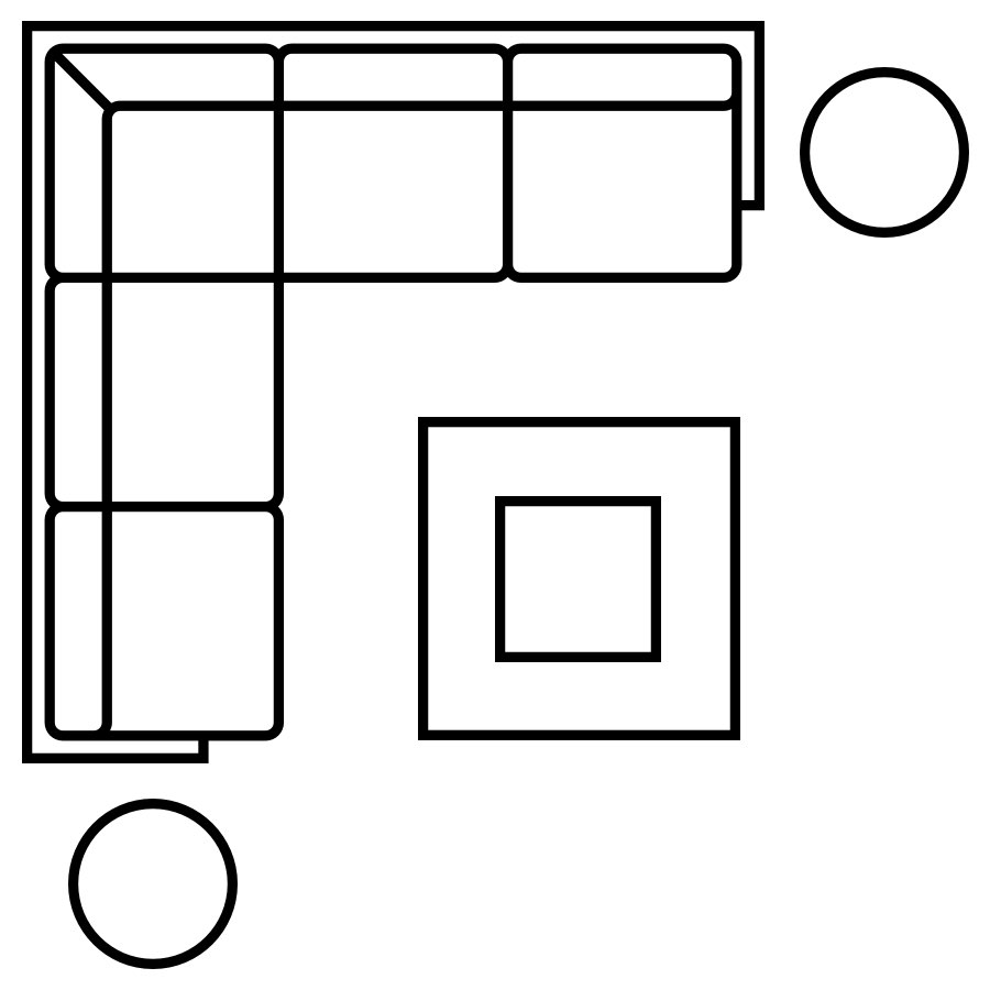 If there were a hall of fame for furniture arrangements, this one would get our vote. Just like in your living room, the classic combination of sofa, loveseat and lounge chair creates the perfect place to spend time with family and friends, while giving everyone plenty of seating options. Side tables on both sides of the sofa provide a convenient resting place for food and drinks.