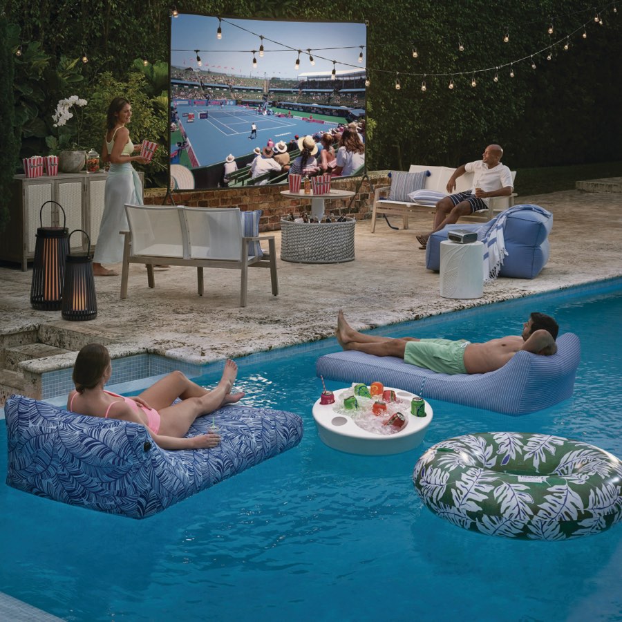Perfect for relaxing in the middle of your backyard as well as in the pool, our generously overstuffed Spazio Armless Chair is filled with polystyrene beads that create a comfy spot to watch your favorite film. Although if you decided to doze off during the show, we wouldn’t blame you.