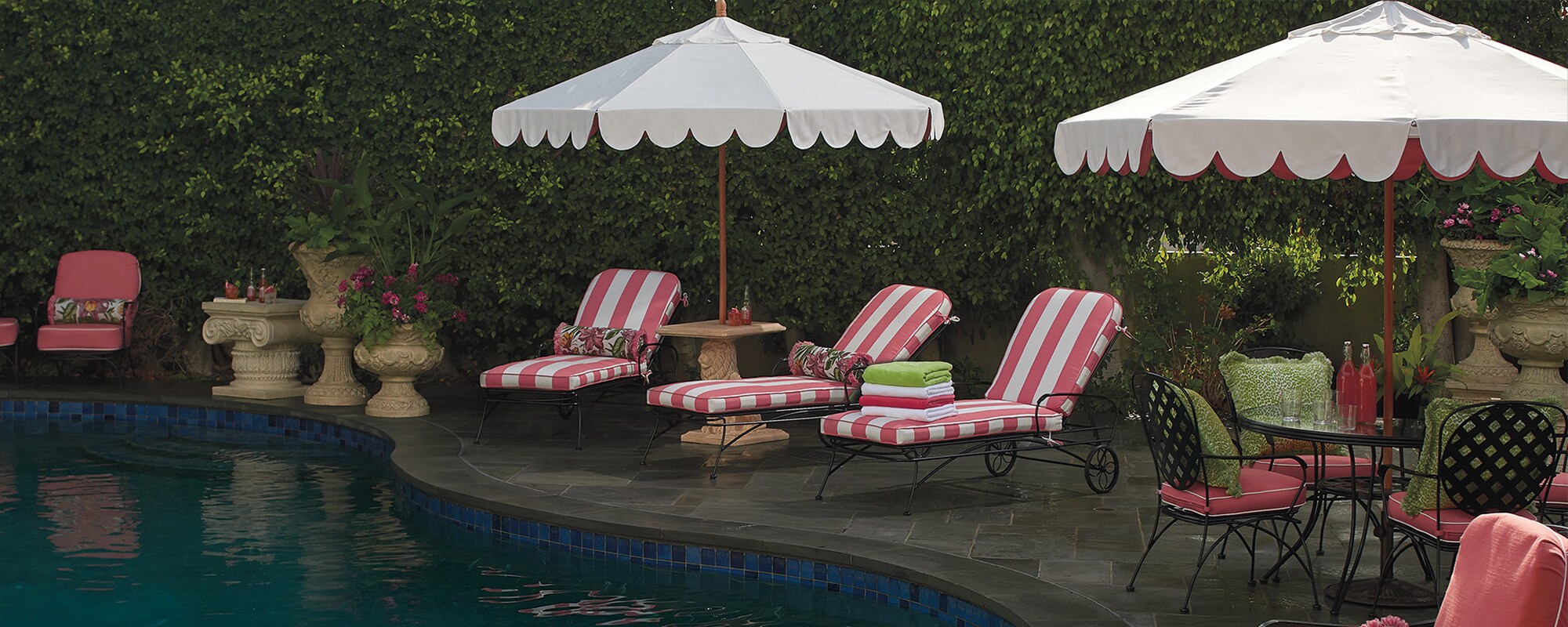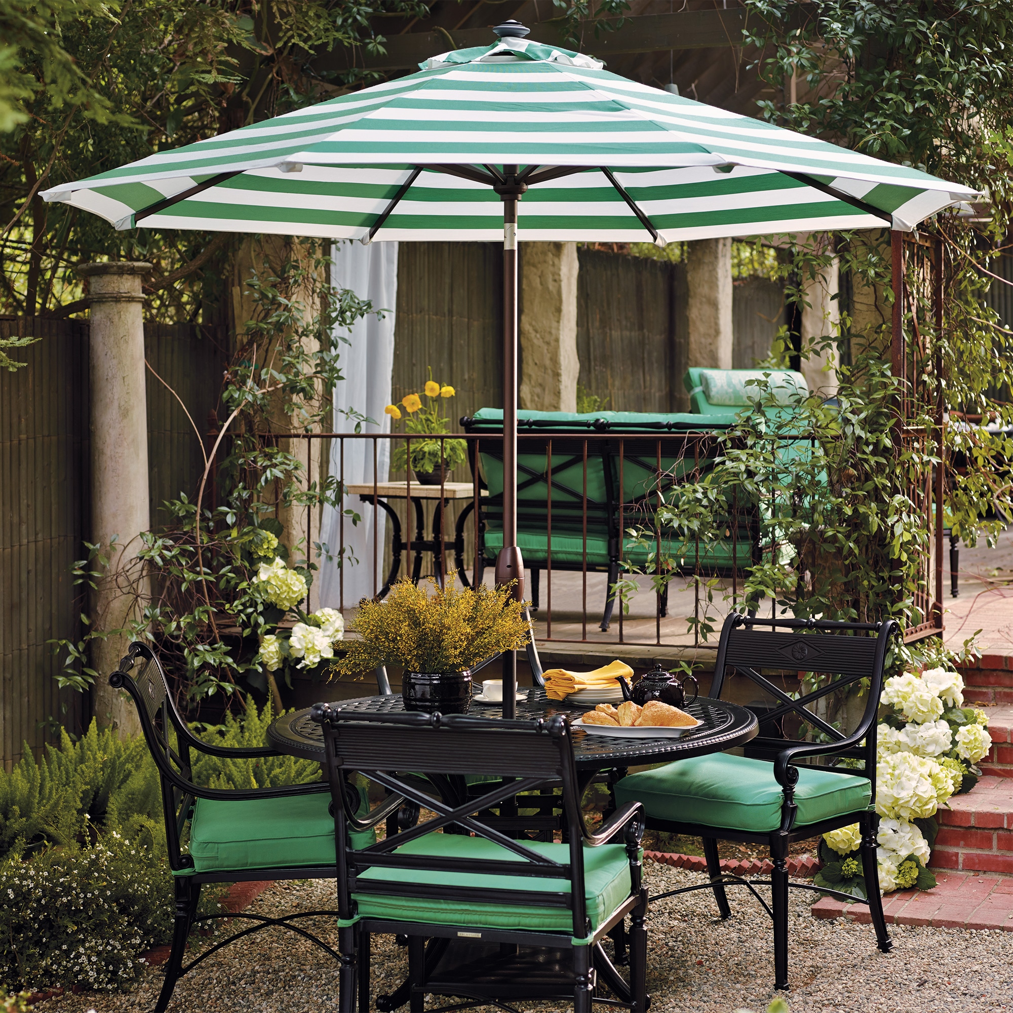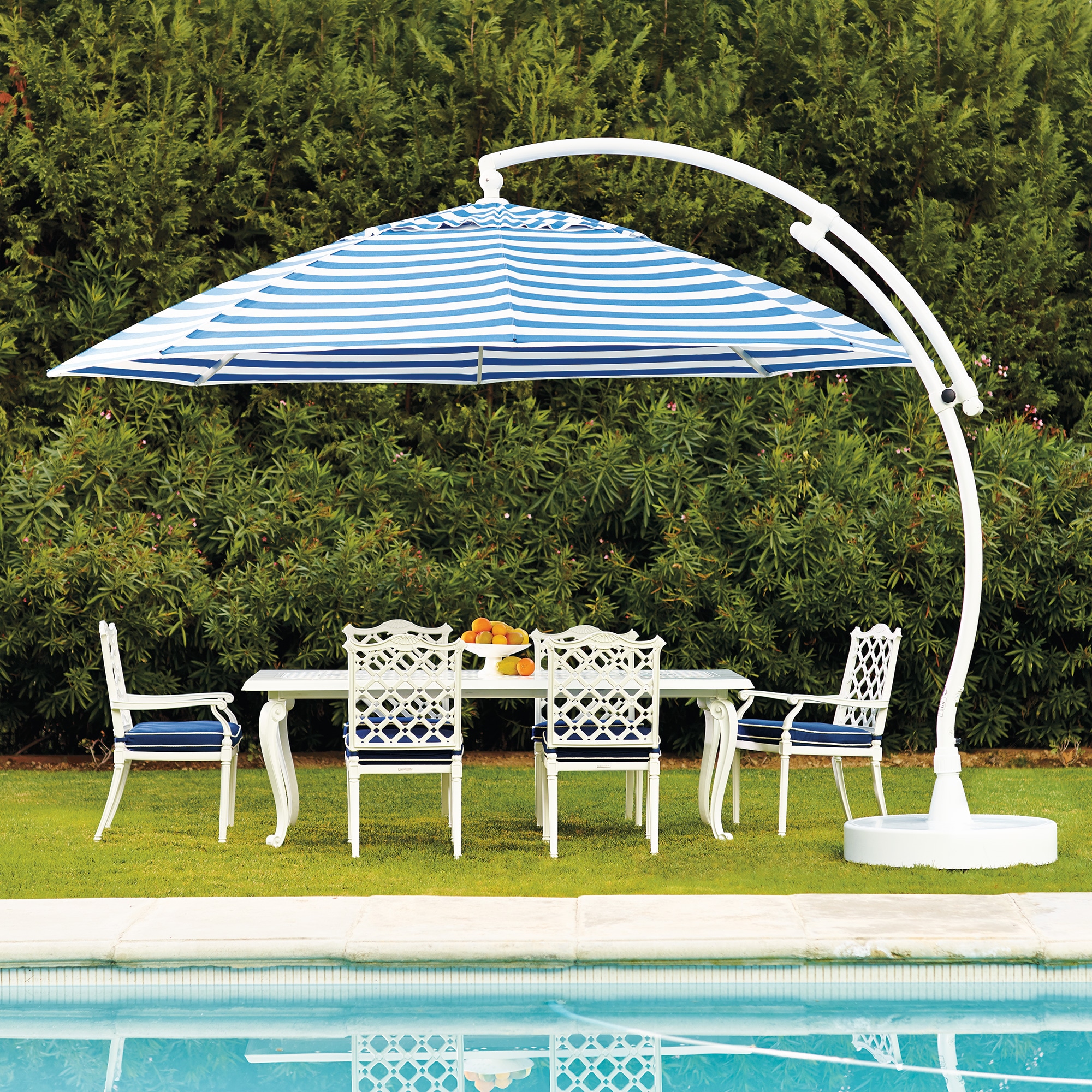 Stripes or solids? Stunningly ornate or something simple? Design the perfect accent for your outdoor space with an endless array of options – from the finish of the base and pole to the color of the canopy – for personalizing your umbrella.