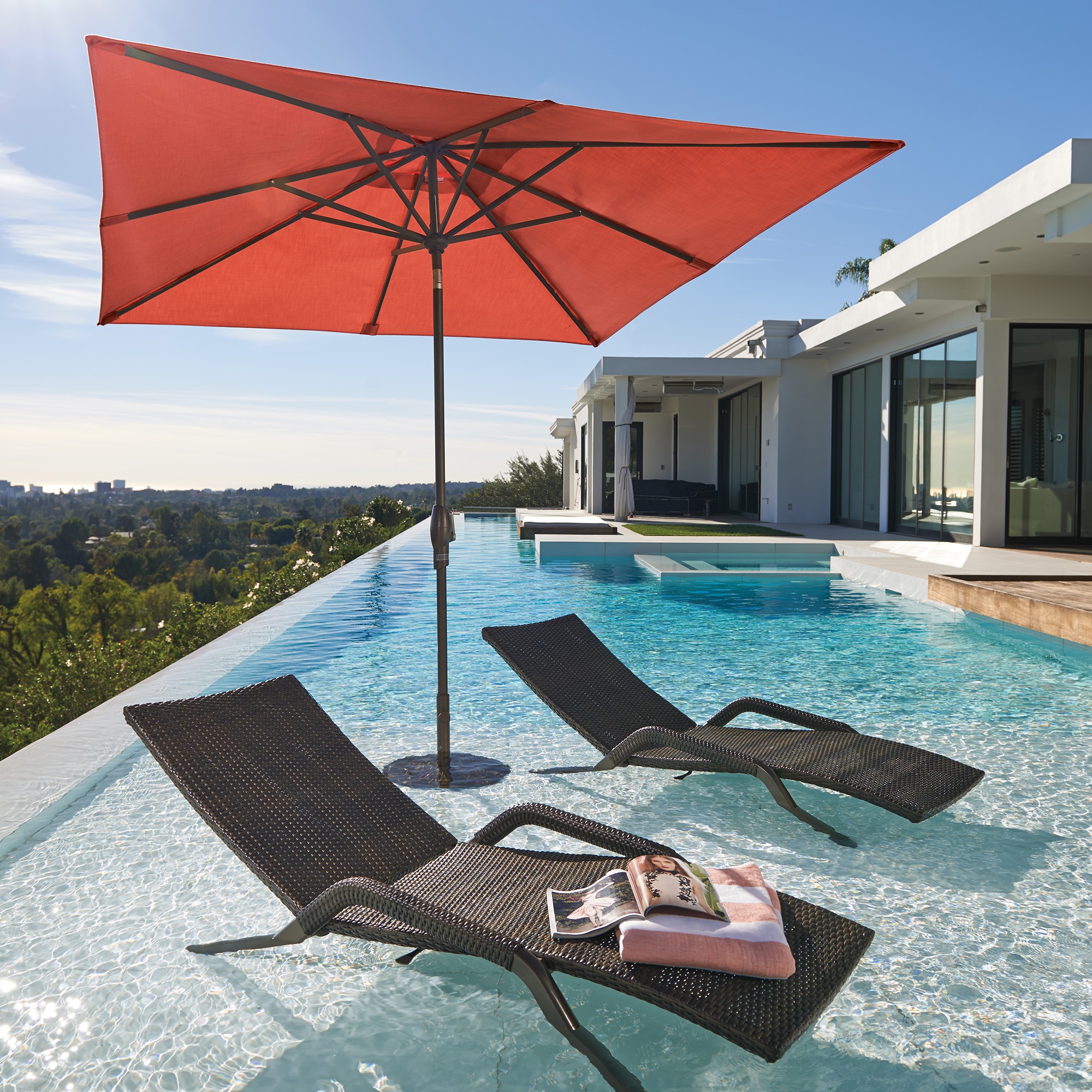 Solving for style and shape are a large part of the puzzle when picking the perfect umbrella, but an equally important piece is function and versatility. All-purpose fixed umbrellas stand at the ready to block UV rays from an overhead position, while cantilever umbrellas tilt, pivot and swirl 360° to adjust to the movement of the sun.