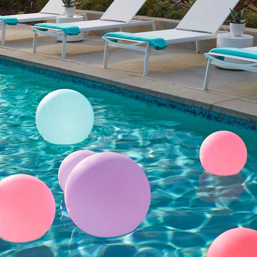 Pools have a way of being the star of the backyard, but we don’t often think about lighting them up in the evening. Glow balls are waterproof and change colors for a magical effect. These free-floating orbs can be used beyond the pool, glowing perfectly on a deck or scattered around a garden.