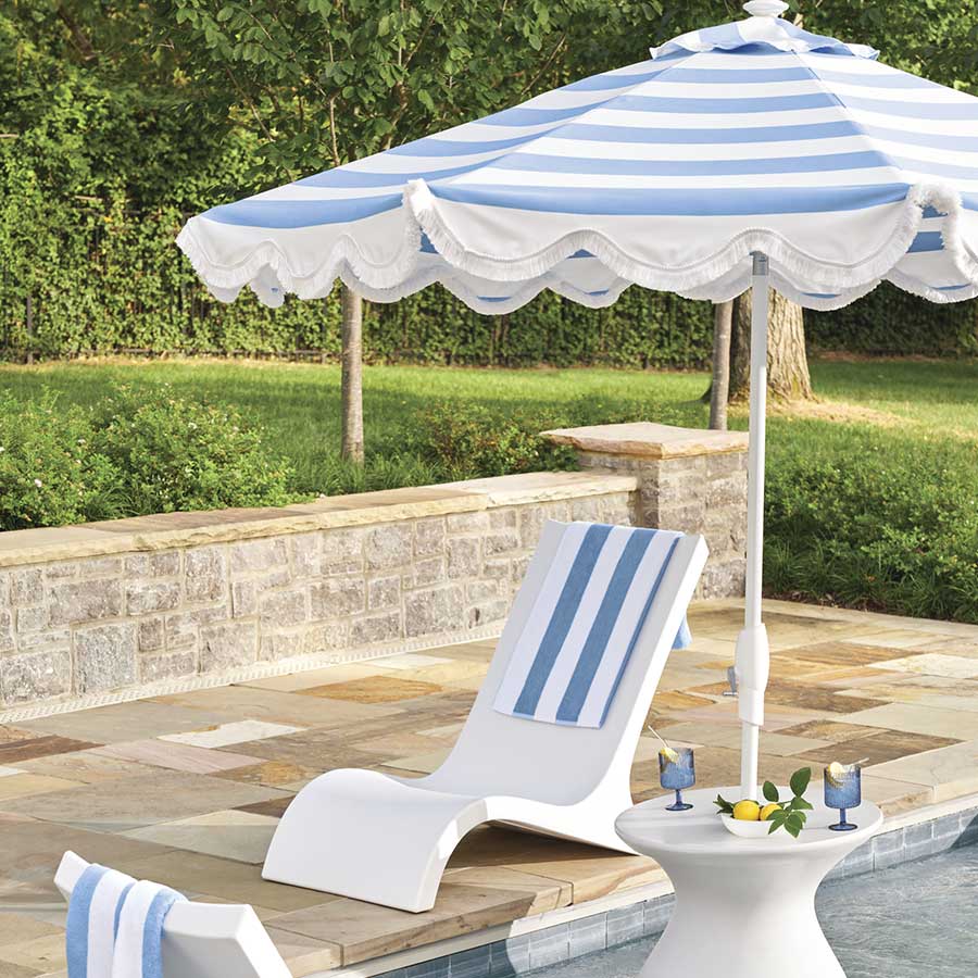 WHAT: With features like hand-painted patterns, contrasting piping and decorative fringe, our designer umbrellas transform sun protection into stylish anchors of your outdoor decor.