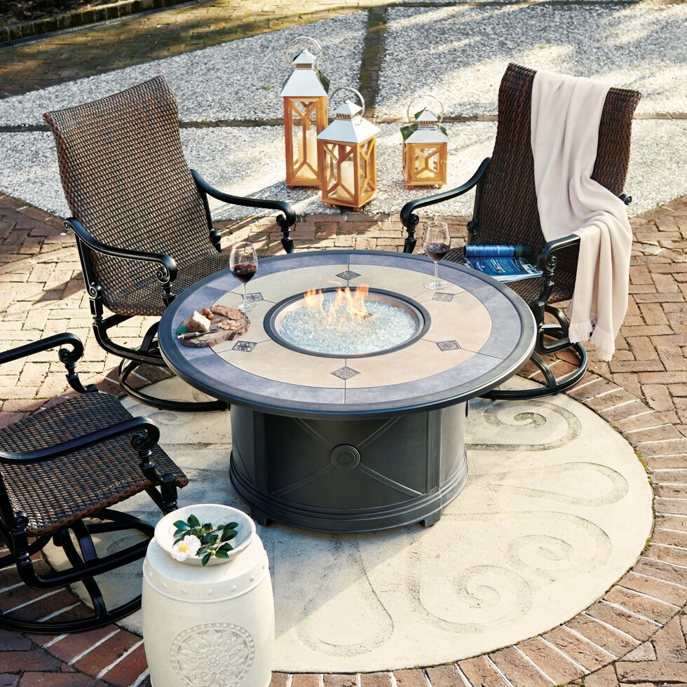 Special conversion kits allow many fire pits and tables to be converted from propane to natural gas – or from natural gas to propane – but check your specific product’s manual to be sure. Depending on the size and construction of the fire table, a propane tank may either be housed inside the base of the table or near the table (such as under a tank cover that could be used as a side table). And, depending on the construction, fuel is ignited using either a battery-operated button that creates a small spark or an external source such as matches or a lighter.