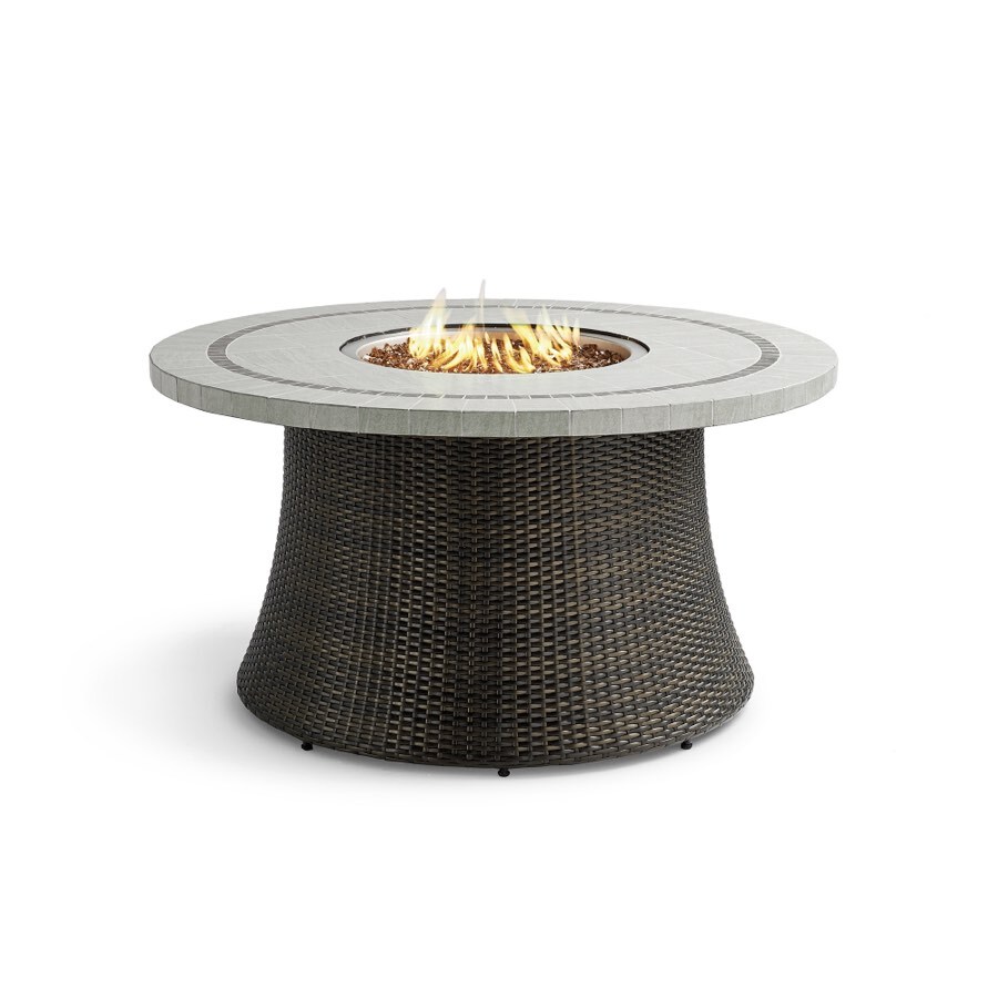 A fire table typically sits higher off the ground – as low as a coffee table or tall as a dining or bistro table – and has a rim on which drinks or plates can rest. A gas fire pit works the same way but usually doesn’t have a place to set drinks or house a propane tank. Both provide even, radiant heat and can be enjoyed in a more intimate arrangement.