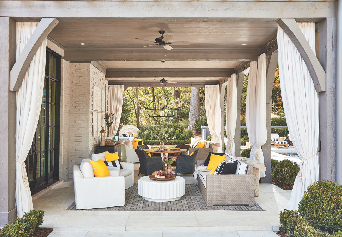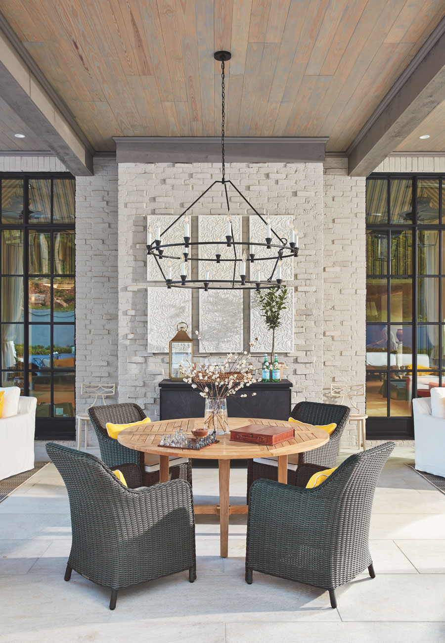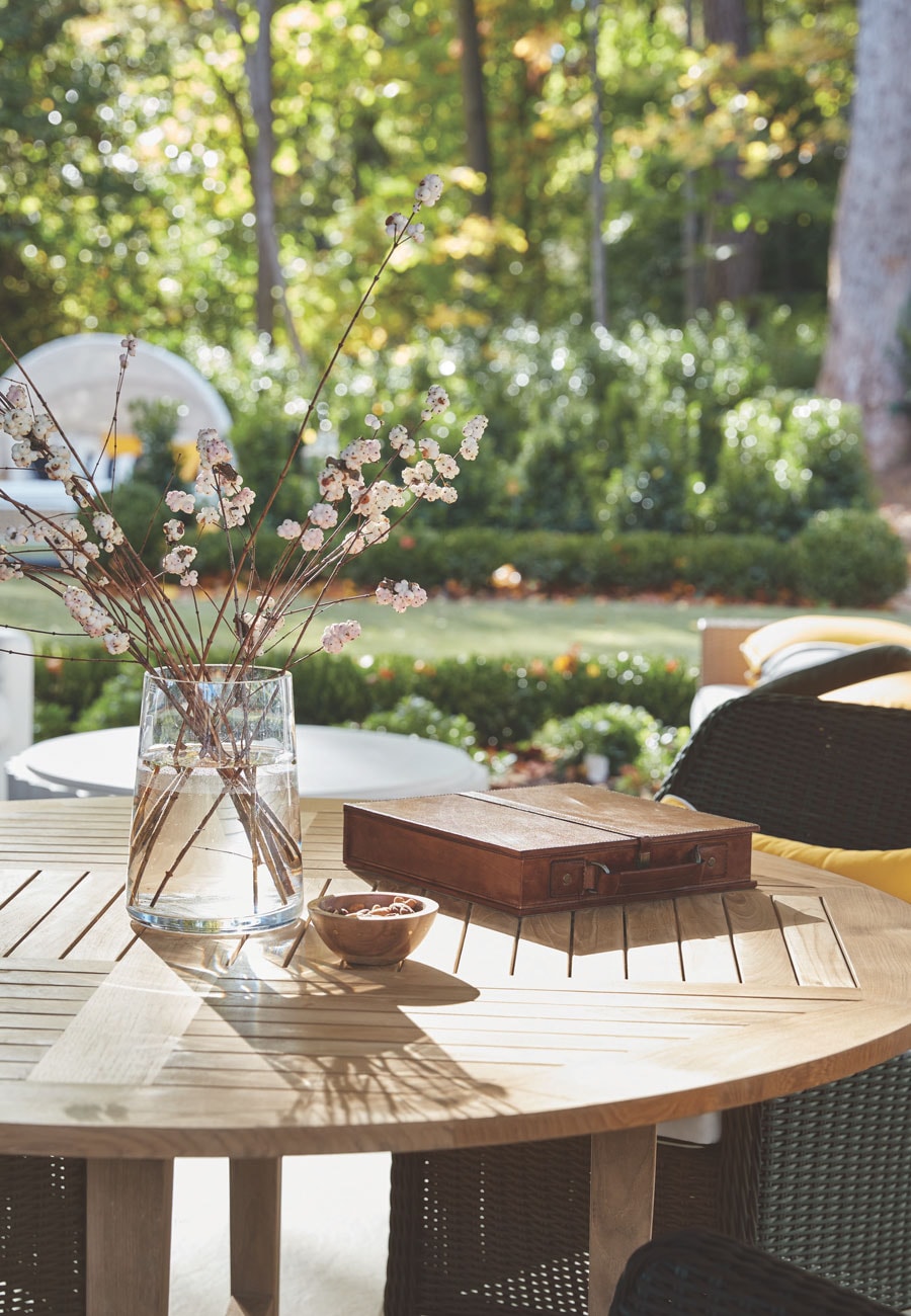 Ashley Gilbreath (AG): The grounds of the showhouse are absolutely stunning and the house itself is beautiful! My goal for the outdoor spaces was to complement the surroundings and create a gracious outdoor living space ideal for a casual family supper or entertaining.