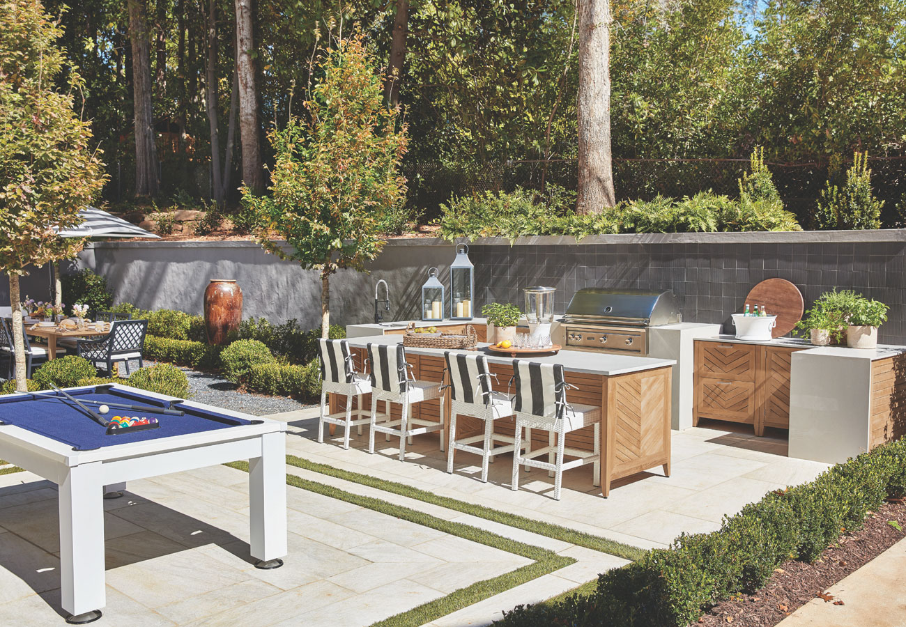The long-awaited reveal is here. Twelve acclaimed designers created House Beautiful’s Whole Home in Atlanta, Georgia, with each tackling the design of a different area of the home. We partnered with designer Ashley Gilbreath to transform the outdoor kitchen and patio into a resort-worthy escape. We have followed Gilbreath’s journey of mapping out the space and selecting the perfect products, and now we are thrilled see the unveiling of the final design. We asked Gilbreath to walk through all the elements of the grand reveal.